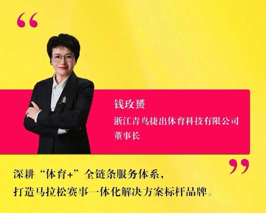 钱玫赟掌舵的浙鸟捷出体育科技有限公司深耕“体育+”模式,构建了覆盖赛事策划、运营管理、品牌推广、科技服务于一体的全链条服务体系。特别是在马拉松赛事领域,青鸟捷出凭借其专业的执行标准、精细化的运营能力和创新的科技应用,成功打造了享誉业界的赛事一体化解决方案标杆品牌,成为我省体育产业服务标准化、专业化的生动注脚。公司先后获得全国群众体育先进单位、浙江省体育服务业领军企业、浙江省社会力量办体育贡献奖、浙江省最具影响力体育企业等多项荣誉,2024温州马拉松还获评长三角体育消费创新场景优秀案例。